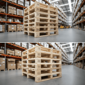 Con medidas de 1200 × 1000 mm, el palet americano (GMA) es dominante en mercados como Estados Unidos, México y gran parte de Latinoamérica. Permite una mayor superficie de carga y es ideal para productos voluminosos.